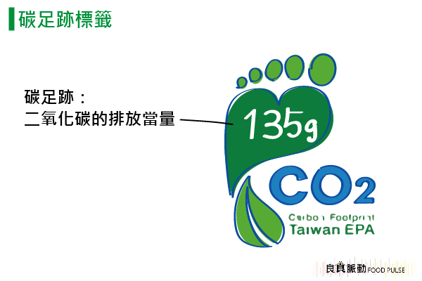 而碳標籤指的是產品從製成到廢棄的各個生命週期階段,產生溫室氣體的總排放量換算成二氧化碳數值的「碳足跡標示」,碳足跡數值較低的碳標籤食物,主要是在地、當季的食物,吃當季食物能減少冷凍保鮮的耗能,吃在地食物則能減少長程運輸所排放的汙染,食物運送的里程愈低,碳的排放量就愈少,有助減輕對環境的傷害。消費者可以選購具有碳標籤認證且碳足跡標示g數較小的產品,為地球環保減碳盡一份心力。