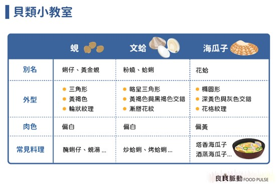 拌著醬油冰涼的鹹蜊仔、佐以薑片甘甜的文蛤湯、蒜頭爆香鮮美的炒海瓜子,這些都是台灣餐桌上常見的海鮮佳餚,這三種美味的貝類都有著相似的外型,你能清楚分辨嗎?今天就來個貝類小教室,只要瞭解以下特點,就能清楚區分它們的差異了!