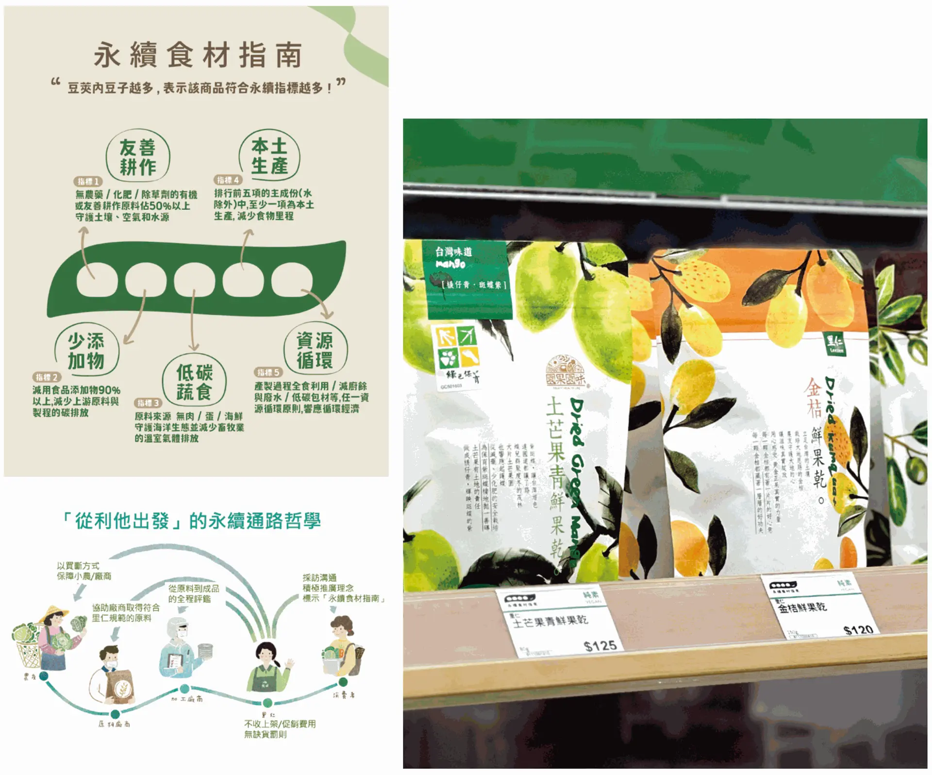 推動永續飲食的第一步,就是要讓消費者很容易買到永續食材。「一般民眾無法親自到產地了解食材和食品是怎麼來的,因此在賣場購物時,很容易就會以價格、外觀和口味來判斷抉擇。」