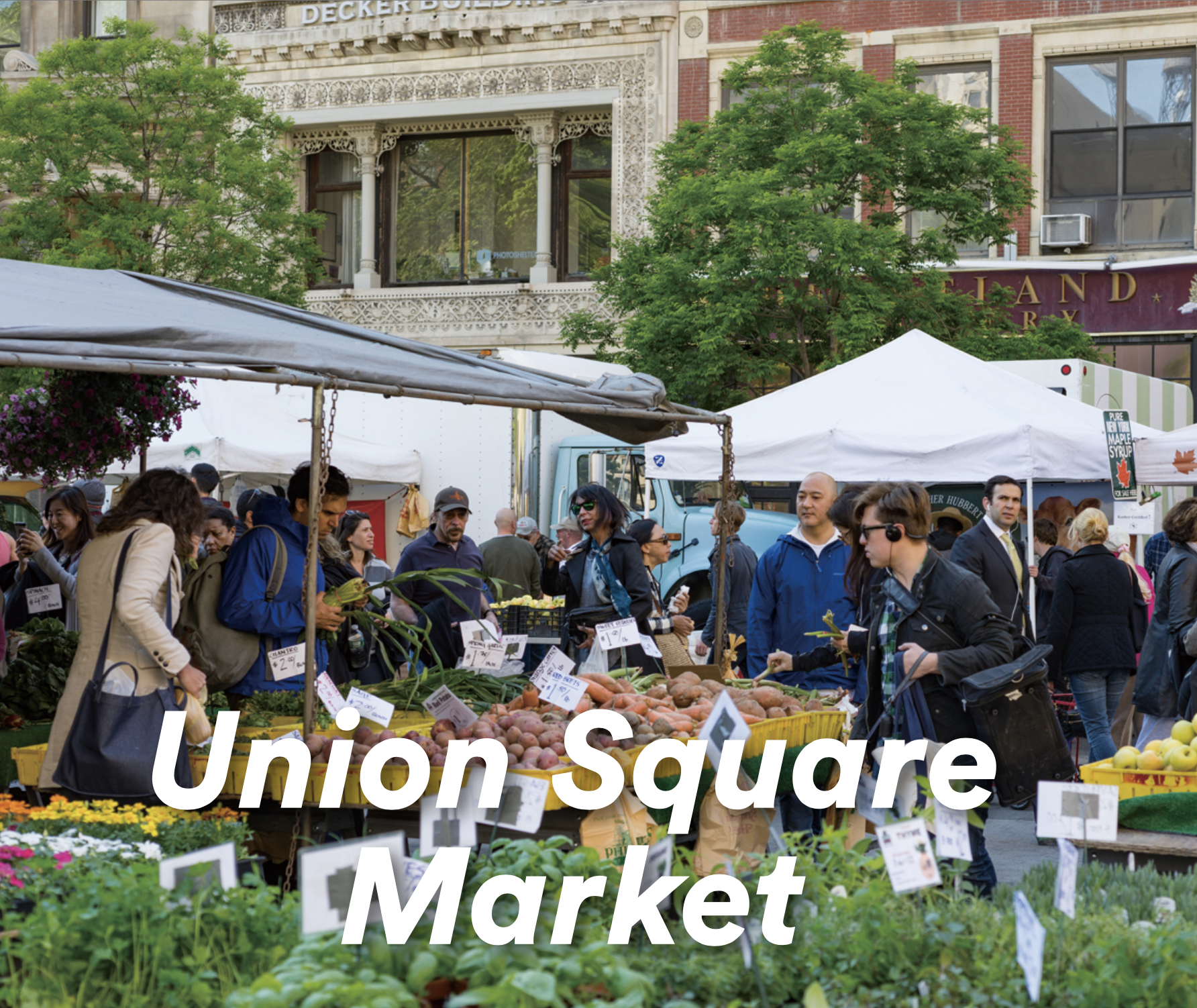 聯合廣場是紐約市最大型的公共場所之一,消費者與農民交流談天;學生藉由參觀市場了解季節性作物;遊客品嚐紐約最出色本地廚師的烹飪示範,不論是城市居民和遊客,都可以在繁華的城市景觀中,體驗到在地豐富資源。