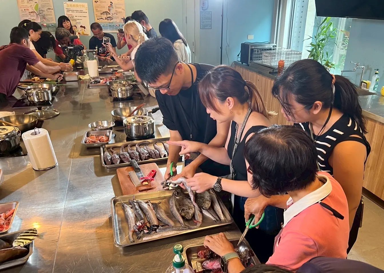 學員分組討論料理方式,分工合作處理競標獲得的魚貨。