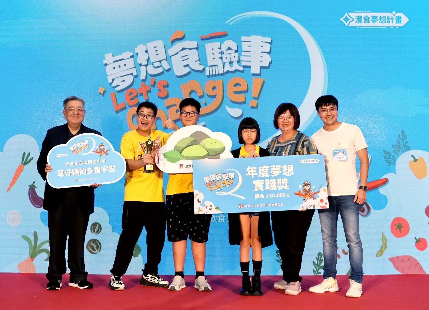 灃食公益飲食文化教育基金會主辦的「第二屆灃食夢想計畫-夢想食驗事」,今(10)日在臺灣科學教育館舉行頒獎典禮,全台9組夢想團隊齊聚一堂,分享精彩行動成果,展現孩子如何從日常出發,用童趣眼光探索飲食文化、實踐夢想。經過評審團評選後,今年度「灃食夢想計畫年度大獎」由新北市瓜山國小所提「草仔粿的多重宇宙」計畫獲得肯定。