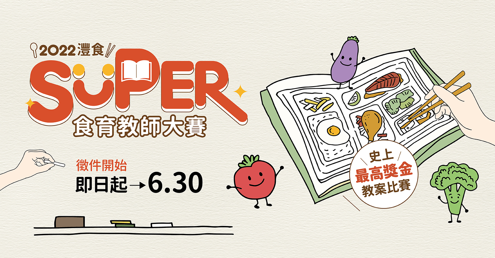 灃食公益飲食文化教育基金會舉辦「2022灃食SUPER食育教師大賽」,即日起開始徵件至6月30日止,藉由激勵校園第一線的教育工作者,結合「營養5餐飲食教育資源網」內容,發想飲食教育創意教案,藉此觸發孩子對飲食教育有更深入的認識,引導他們「吃」不再只是吃,而能進一步對自然、社會與文化進行反思。