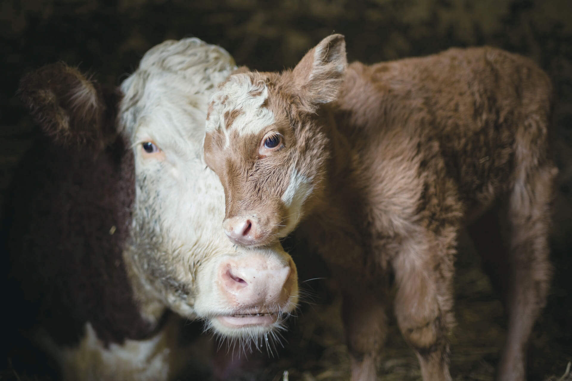 接著,我們思考一下,牛奶包裝上常看到的「快樂牛」。和許多農場動物一樣,很多乳牛終其一生都活在陰暗又狹窄的牛舍中,幾乎沒有踏上自由草皮的機會。牠們被強制授精,在剛生下小牛寶寶時,就被迫與自己的孩子分開,產出的牛乳也被剝削。而當他們乳汁耗盡,也就是生命終結的時候,許多農場主人會把年老無法再分泌乳汁的牛賣到屠宰場,奪取他們的生命最後一刻。