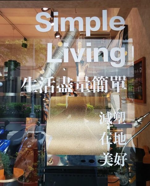 蔡旻杰在環保生活中所經驗到的美好圖像:生活可以簡單卻很豐富,簡單是指物質上的單純,而豐富則是心靈上的充足富有。因此《簡塑慢行》希望將這樣的生活態度分享給客人,所以店門上也貼了一句 slogan 「Simple Living 生活盡量簡單」。