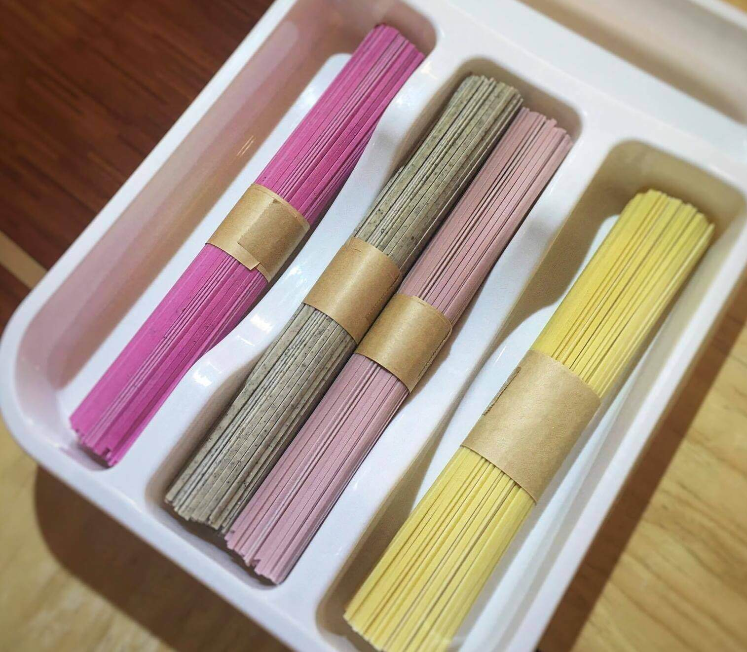 《簡塑慢行》店內販售的商品部分來自台灣的小農,或是用心做農產加工的供應商。例如店裡相當受歡迎的「水果軟糖」,就是屏東的烘焙師採購友善土地種植出的蔬果,全部以手工製成,不但看得見水果天然色澤,也吃得出水果的獨特香氣;同樣受顧客推薦的「彩虹麵」則是嘉義製麵師傅的第二代,將紫心地瓜、火龍果、南瓜等天然蔬果揉搓入麵,有些甚至不加一滴水,更沒有防腐劑等添加物,做出五顏六色的蔬果麵條,不僅好吃、好看、也很營養。蔡旻杰相信店內販售這些用心的好產品,非常值得推薦給更多人認識。