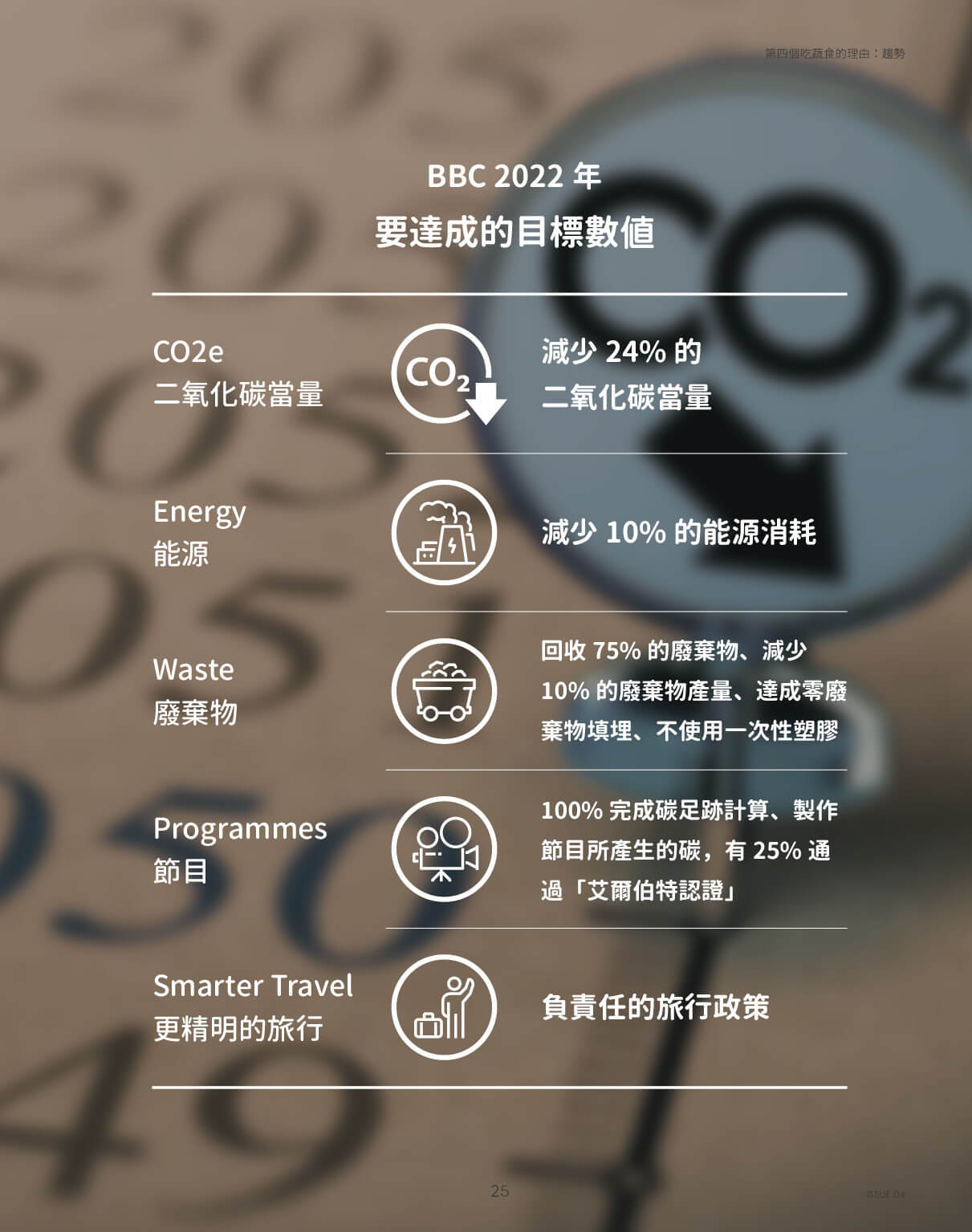 全球指標型企業像是蘋果、微軟、亞馬遜等,接連宣示要全面消除企業產生的碳排放,連帶要求供應鏈要達成共同目標。英國媒體BBC也在環境永續的議題展現決心,制定「綠化製播策略」(Greener