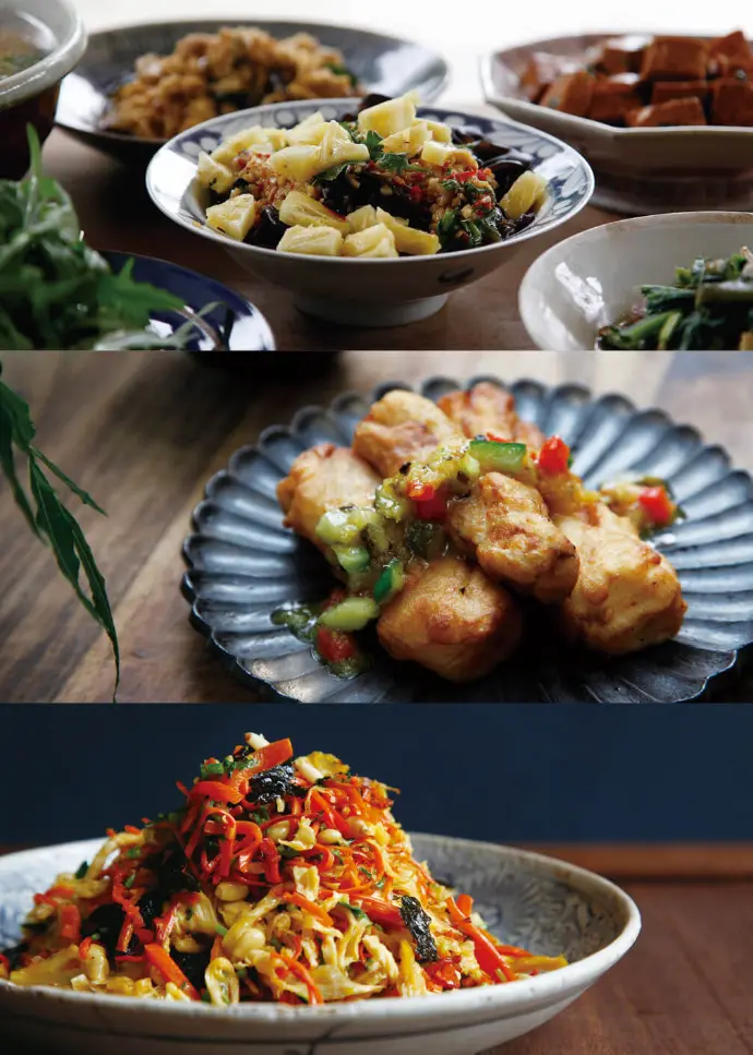 而蔬食者常運用的食材像是豆腐、豆乾、豆皮等豆製品,培仁老師認為,料理時不用想得太複雜,其實,簡單就能打動人心。她的母親以前常把豆腐煎得像「山」推疊地一樣高,吃法也相當簡單,其實只要直接沾醬料,或拌入大蒜、香油等就非常下飯,尤其在寒冷時節吃,可以吃得暖心又暖胃。