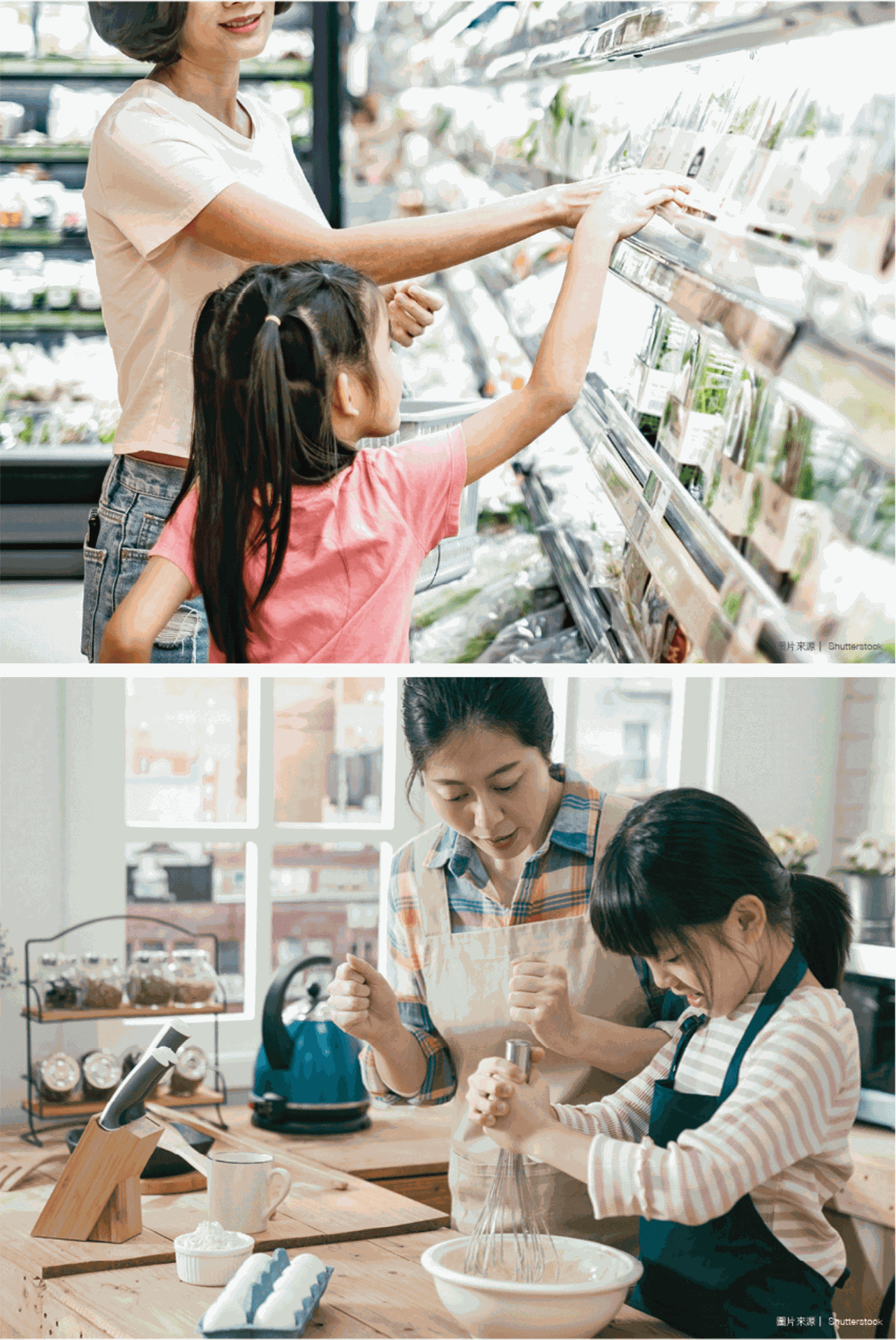 在一起買菜的過程中,她也會用「請孩子幫忙算錢」的方法,來取代用強制方式和孩子說「這個不行或這個不好」。林如萍談到,很多父母會覺得辛苦的事不要讓孩子知道,她認為,除了認識食物的經驗之外,孩子也是家庭共同成員,所以她會告訴孩子今天要買什麼、有多少錢,「當然,不能選太多東西,通常就是選一樣,我會很快先挑好要買的東西,剩下的讓孩子選,或是讓他加一樣買不買都沒關係的物品,讓他因為參與而開心,然後幫忙推推車,當孩子長大成人後,這些經驗對他來說都很寶貴!」