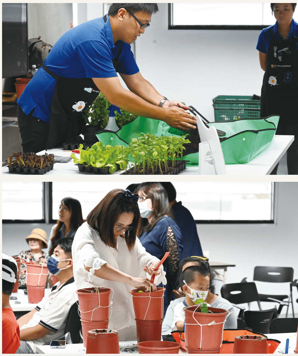 於是,陳崇正把農場搬到了教室裡。從2022年開始,他與灃食教育基金會開始合作親子食育營隊,先後在嘉義、宜蘭、高雄、台中、台北等地執行活動,落實飲食教育在生活中,陳崇正負責帶著家長從種子、幼苗到植株去了解植物長大的歷程,傳授如何在自家陽台打造小小農場的秘訣,引導家長如何帶著孩子去開始接觸土壤、認識這塊土地上長成的每種作物。