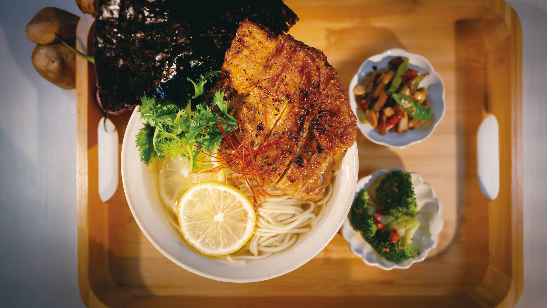 為讓每位來到常不輕的客人感受到蔬食的多采多姿,餐廳外觀陳設使用大量黑白灰色系的基調設計,餐具則運用了萬華百年老店蒸籠、赤峰街陶器餐具,組合起來呈現出謙遜低調的風格。負責打造空間調性的姚仁祿分享,「如果傢俱也跟著花起來,那就沒有感覺了!我們希望環境是盡量的樸素,降低熱鬧的色調,如此一來,整盤蔬食看起來才會有意思,更凸顯出整體菜色的樣式。」